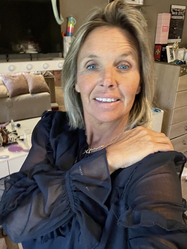 This amazing blouse is perfect for work and date night. You can dress down with jeans and flats and dress up with heels for a dinner date. True to size. You’re able to use a blazer, if you don’t like the see through sleeves.