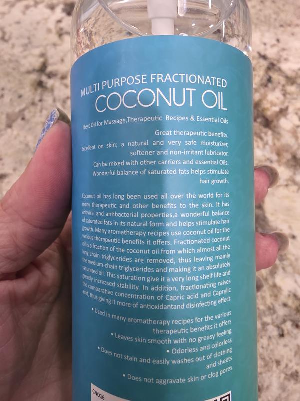 The 100 Pure & Natural Fractionated Coconut Oil has so many uses. I use it for makeup removal before washing my face, it is great for moisturizing, and I use it as hair oil. Since it is fractionated, it remains liquid..