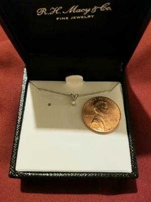Over the years I have bought many pieces of jewelry & for the most part have been Very satisfied. I bought this particular necklace because it was a great price! I have to say I was Extremely disappointed of how small the diamond was! I know things got expensive but, this necklace was Extremely disappointing!! What happened to Macy’s quality??