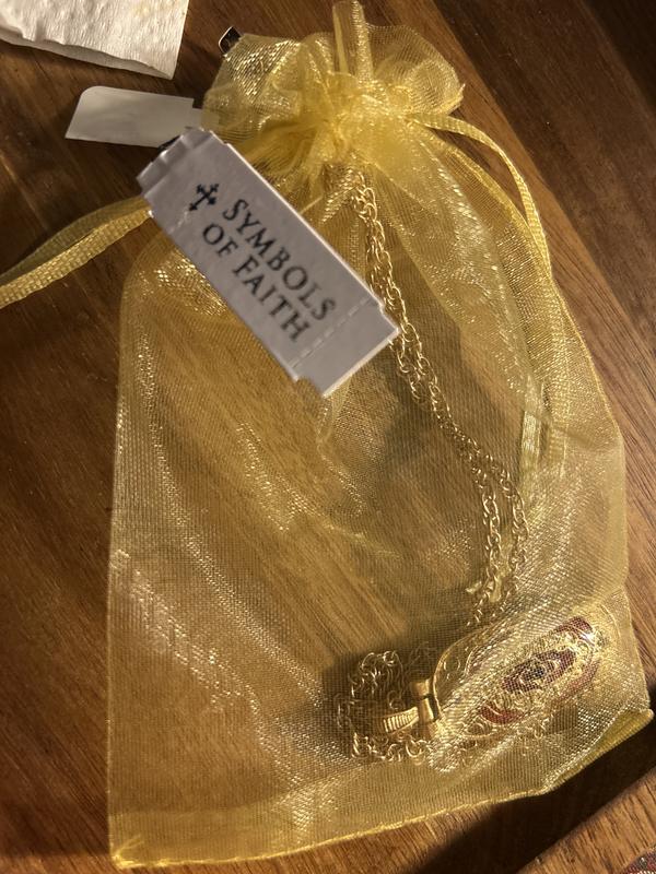 I love the necklace but the description and pictures show a gift box. Now I’m forced to buy a necklace box to give as a gift. It wasn’t cheap… sad it’s really not Macys fault it’s the Vendors failure. Stupid organza bag!