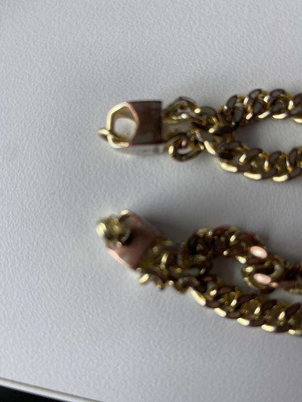 Bracelet spilt into 2 chains and then it started turning green and it also called 14 carat good that has to be a lie