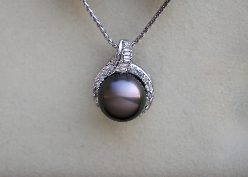 I purchased my Tahitian pearl diamond necklace. It’s beautiful and diamond is very sparkle and the pearl was really big. But the necklace come with the pearl it’s too small and very thin. The pearl is way too big for a necklace and the change can be ripped very fast so I have my other change to wear thicker one now it’s look perfectly. my next purchase is the earring to match with the necklace.