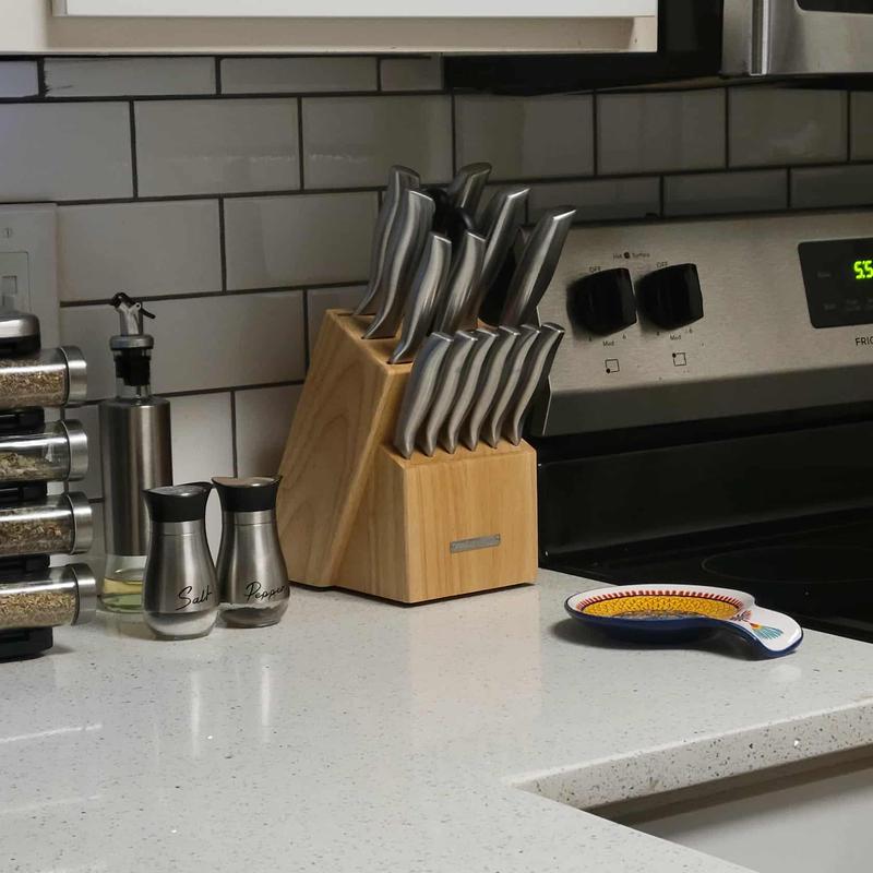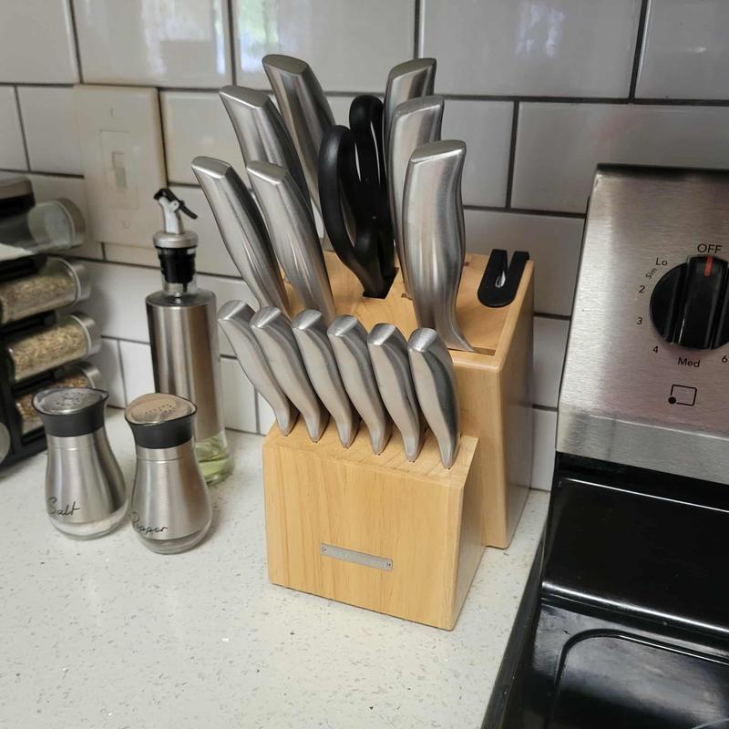 15 Piece Stainless Steel Knife Set with Block and Sharpener