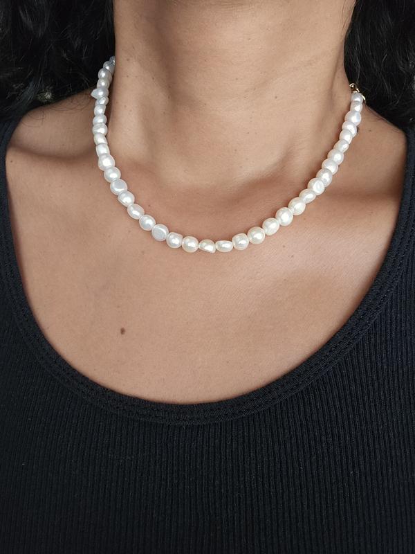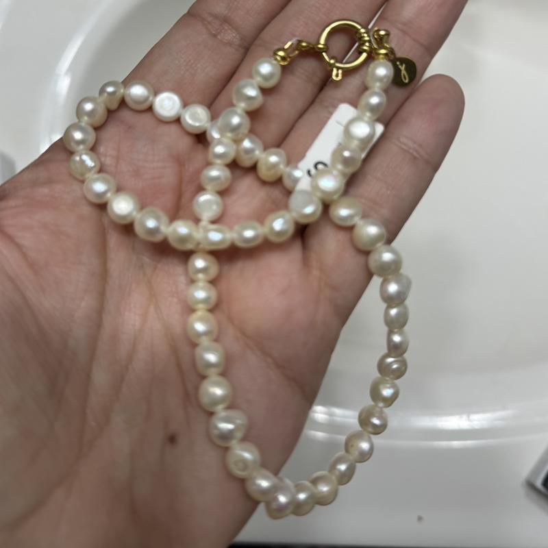 The quality of this necklace is great! Pearls have a slight iridescent sheen to them. The gold plating is very bright & shiny. The only reason I gave them a 4 and not a 5 is because it is quite short in length. I do have a bit of a bigger neck, but I wish there was maybe an 1” extension on the clasp so it’s a bit adjustable. The packaging was beautiful!