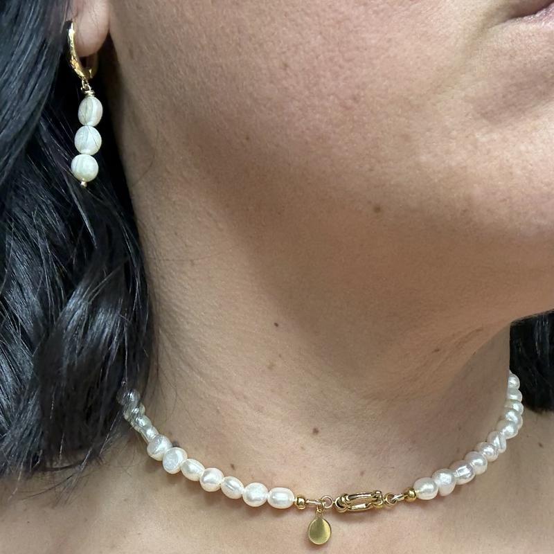 I adore the combination of pearls and gold accents in both the necklace and earrings—they complement each other beautifully. The round clasp on the necklace adds a striking touch, drawing attention to the gold detailing. I love that it’s versatile: you can wear the closure in front as a design feature or turn it to the back for a more classic look. The overall design is simple, elegant, and lightweight—not too long, and the small size fits perfectly around my neck. The matching dangling earrings are absolutely stunning. While I wouldn’t wear them daily, they’re ideal for formal or semi-formal occasions like weddings or business events. This set would make a thoughtful and timeless gift for a mother—perfect for Mother’s Day, a birthday, or any special celebration.