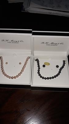 I bought the black pearls set. It is good but the size of pearl is smaller than I thought. Also the earring feels like very small pearl stud earrings. It feels like it will go through my mom’s ear lobe holes. Other than that it’s ok. It is good for younger crowd.