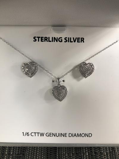 Diamond heart, necklace, and earrings set