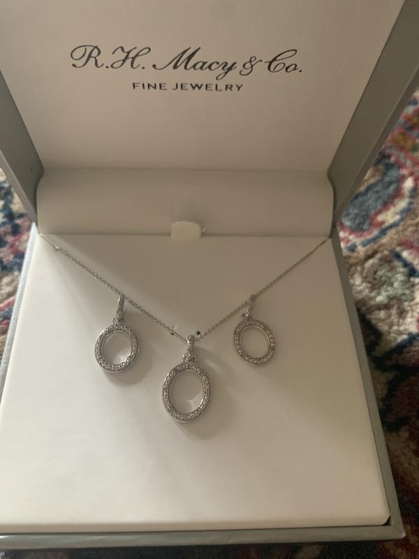 2-Pc. Set Diamond Oval Pendant Necklace & Matching Drop Earrings (1/6 ct. t.w.) in Sterling Silver, Exclusively at Macy's