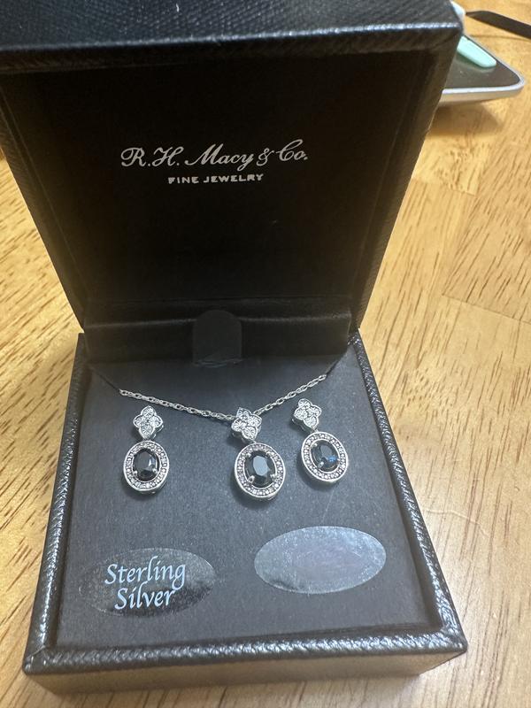 The pendant and one earring are black and the other earring is blue, although the whole jewelry set was with a blue stone, there was no black at all. I saw it too late, I can't turn it back