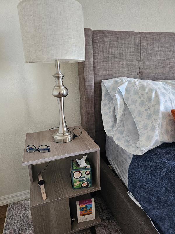 2 Pieces Wooden Modern Nightstand Set with Solid Wood Legs for Living Room