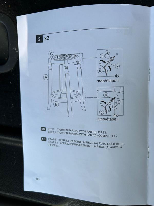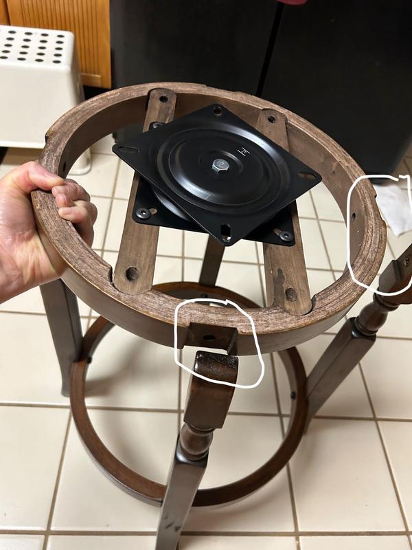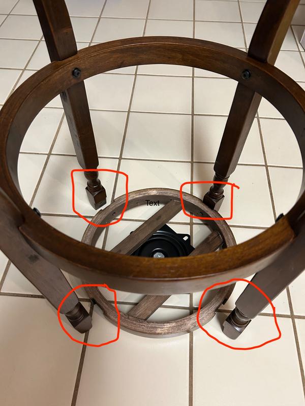 Parts are defective. Part A (legs) does not match Part C (base under seat). The diameter of the Part C is about two inches smaller than the Part A (after step 1).