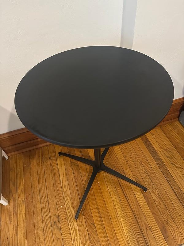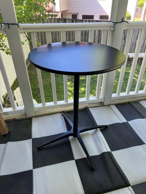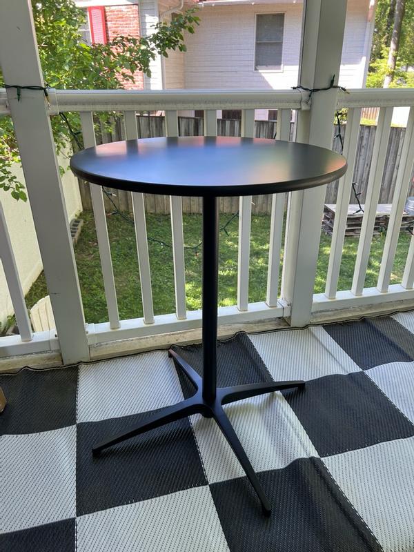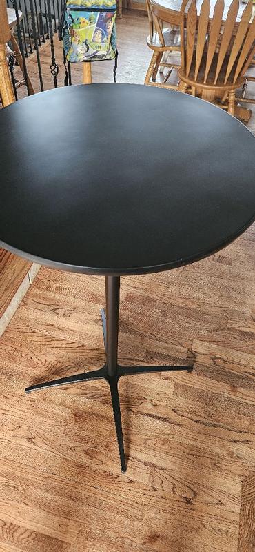 This pub height table is a perfect asset to my mancave area. The two height options are an added plus. They fit perfectly with stools that I already had. The table top is just the right size for a drink and snacks or just a laptop. Assembly took all of 5 minutes!