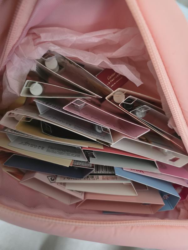 This was a fun way for my daughter and I to sample some popular fragrances. They came in a cute, pink makeup bag. We can decide which one we would like for Christmas.