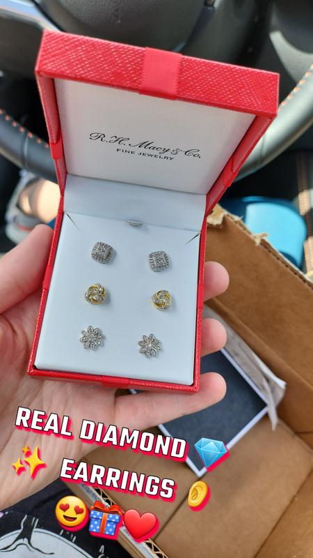 3-Pc. Diamond Stud Earrings Set (1/4 ct. t.w.) in Sterling Silver & 14k Gold-Plate