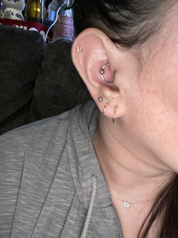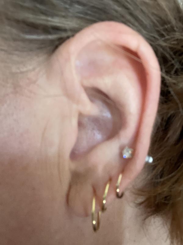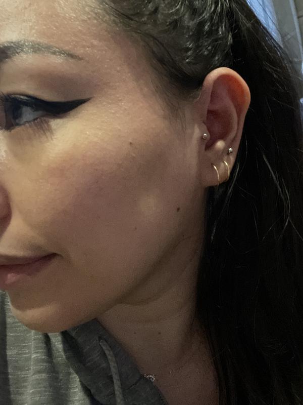 These are very pretty and perfect for the look I want with 4 piercings. Very sadly returned these, too small and delicate. Not able to put earrings in by myself, and was afraid they would bend or break if I kept trying.
