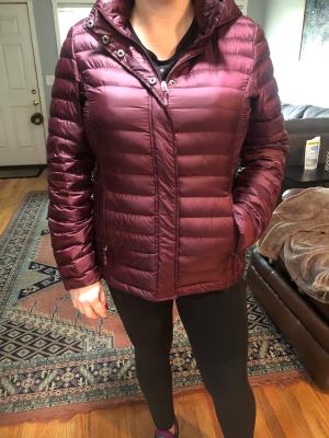 This is a great jacket!! Very warm but light weight. Perfect for errands.