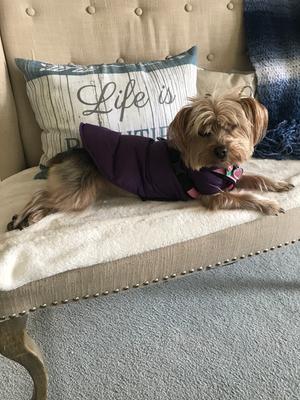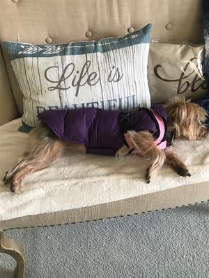 My girls love their backyard coats! We have hot pink, red plaid and blue. 12 lb terrier wears small, heavier one 19 lbs wears medium. I still have them all from last year and they hold up well.