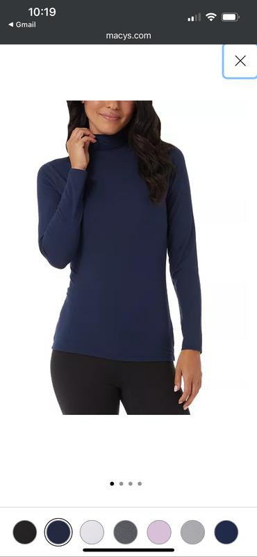 Beautiful dusty lilac color. Very thin fabric great for layering. I didn't notice when I ordered it that it claims to have thermal properties.