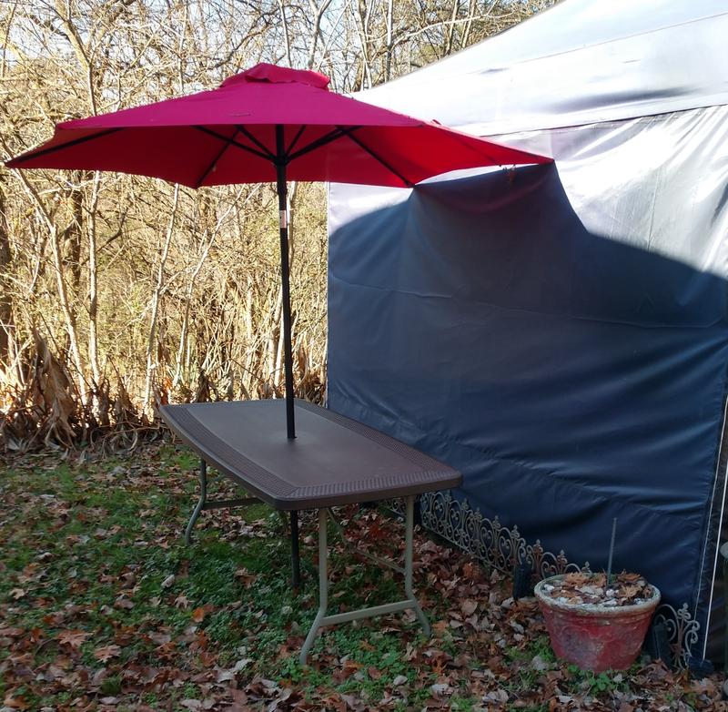 I originally got this table to utilize outside for parties as a serving table. It has a hole for an umbrella which makes this super functional. Since my dining room won’t arrive for months I’ll be usually it as an indoor dining table for Thanksgiving. It took just minutes to pop up. I’ll throw a beautiful tablecloth over it and tablescape, it will be perfect. Now that I have this, I can think of so many good uses for it. Glad to have this on hand for holidays, parties, sports games, etc.