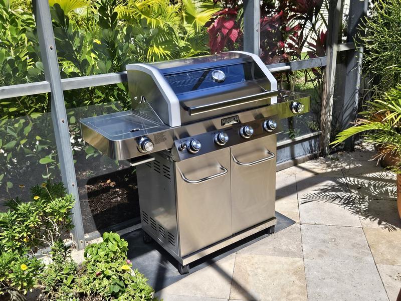 This grill is top line and I'm glad I purchased it. It cooks my food evenly, has upper racks, side burners and you can adjust the heat easily. Everything i cook comes out tasty. The led lights on the grill knobs are a nice feature. It's just a beautiful stainless steel grill. Worth ever dollar!