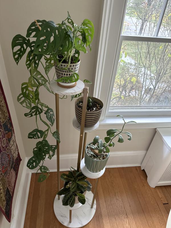 Web ID: 16954230This 4-tier plant stand will provide ample space to display more potted plants while taking up very little floor space with its compact design. And the 4 staggered round plates ensure aesthetic appeal while ensuring that all plants receive full sunlight and grow healthily.