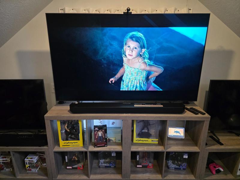 Delivers theater sound, high quality. I will never buy anything but Samsung.
