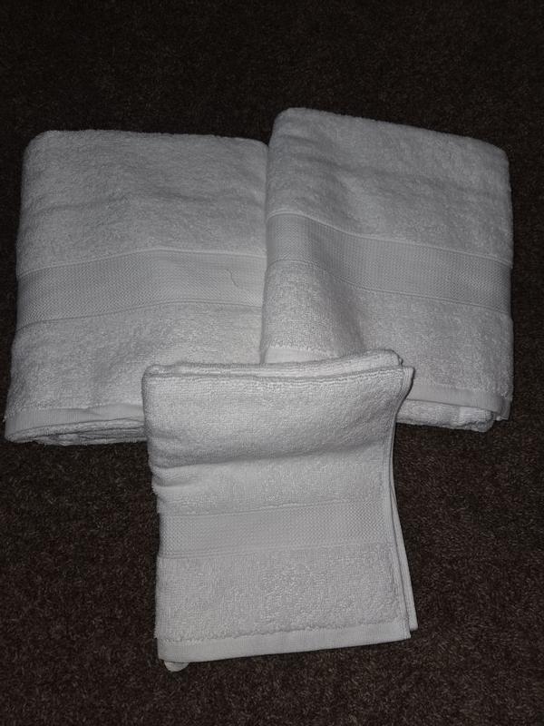I love these towels. They are pretty soft, the quality feels nice. I really appreciate that the face towels have something you can hang them with in the shower. I also like the different sizes provided.