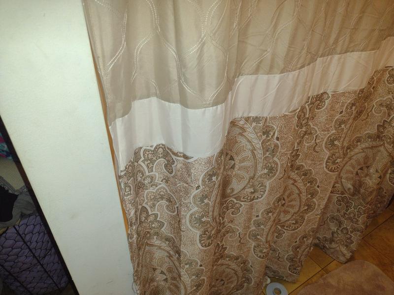 I recently received this shower curtain, and I must say I’m quite satisfied with it! The design is elegant and complements my bathroom decor beautifully. The combination of light blue, beige, and white with intricate patterns gives it a sophisticated and calming look. The fabric feels decent—it’s not too thin, but also not overly heavy. It hangs well and adds a nice touch of texture with the gathered white section. One thing to note is that the fabric can wrinkle a bit, but it’s not a big issue. Also, while it’s not a waterproof curtain, it works great with a liner behind it. Overall, a stylish and affordable choice for a bathroom upgrade!