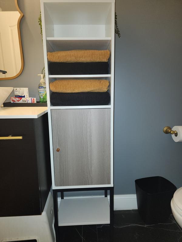 - Adjustable Storage Solution: This narrow storage unit can accommodate items of different heights and sizes with 3 adjustable shelves, including 2 shelves with 6-position adjustment and a 3-position adjustable shelf.