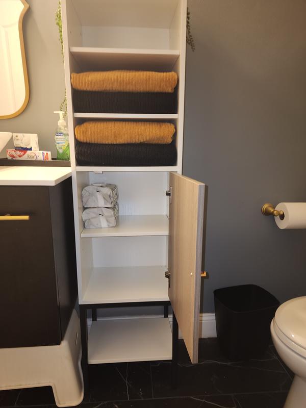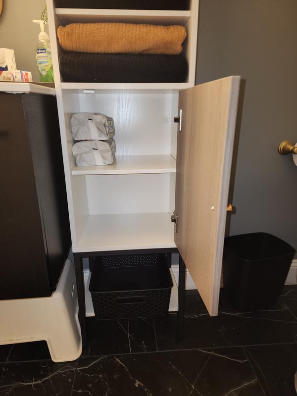 I was a bit hesitant about this cabinet because of how affordable it was. But im so happy I purchased it. It gives my guest bathroom the extra storage I needed. Its design is really nice and tye material is super sturdy. Its not a bulky piece so it fits extremely well in my space. I wish I could add pictures.