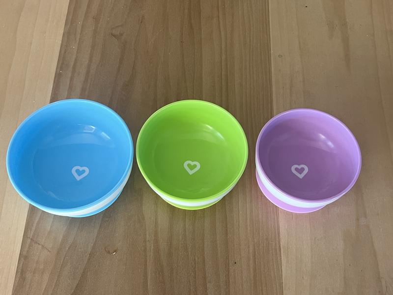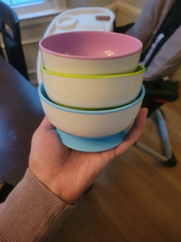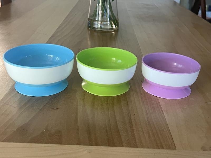 These are perfect for my little one. He loves yogurt and applesauce and is highly independent. Because he is only 1, he doesn’t understand that he has to hold the bowl with one hand while he spoons his food. The suction on the bowls make it possible for him to feed himself without the bowl sliding all over the place. They are fairly easy for my little one to remove though so I have to keep an eye out for that. The variety of sizes is also great for different meals.