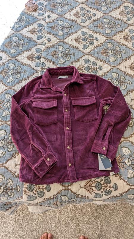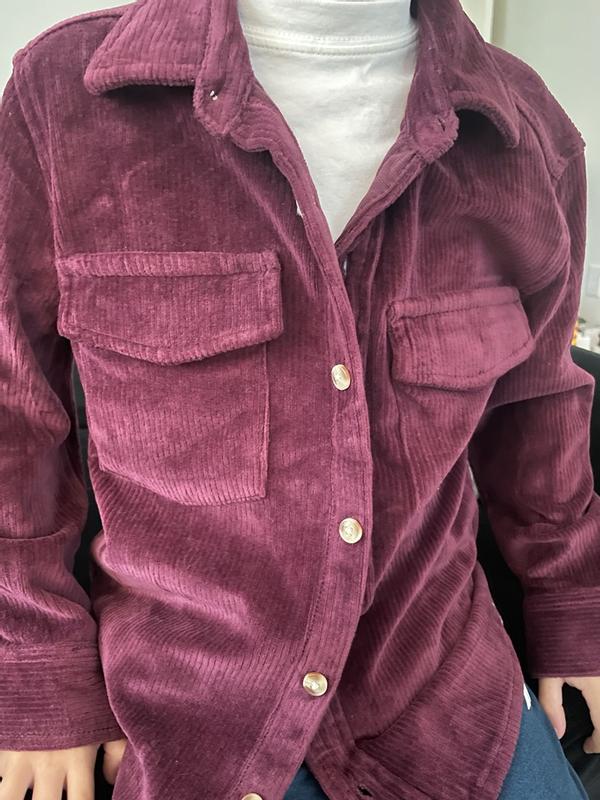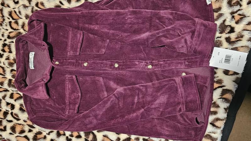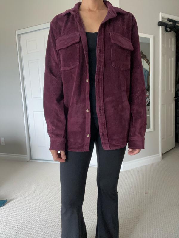I received this burgundy corduroy button-up for my daughter and she absolutely loves it. The color is beautiful and the fabric is warm and cozy-great for fall! We ordered it oversized with the intention of it being more like a shacket. It’s soft but still structured and she says it’s really comfortable. This shirt is a winner!