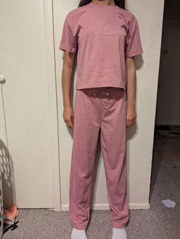 I was really impressed with this Abercrombie Kids boxy tee and pants sleep set. The material is super soft right out of the package, and it stays that way even after multiple washes. The boxy tee fit is comfy without being too oversized, and the pants have the perfect amount of stretch for sleeping or lounging. The quality feels way better than most kids’ pajama sets — thick enough to last, but still breathable so my kid doesn’t get too warm at night. The stitching and waistband are also really sturdy, which I appreciate because kids are rough on clothes! Overall, it’s cute, cozy, and worth the price. I’d definitely buy more sets in different colors/prints.