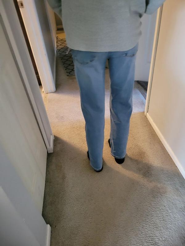The kids Abercrombie straight boy jeans feel soft. The jeans seem to hold up well after washing. The length were short for my 5'7" son. Definitely straight leg, could use a little more room in the thigh. Nice light wash color.
