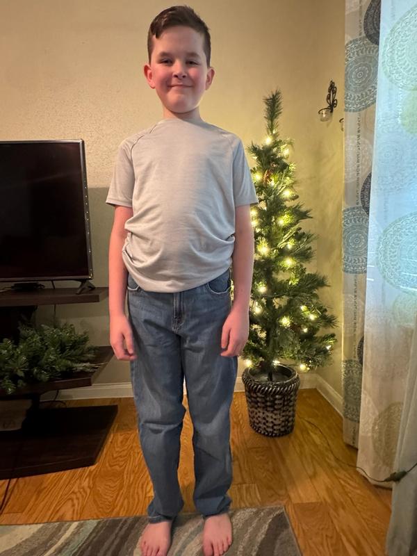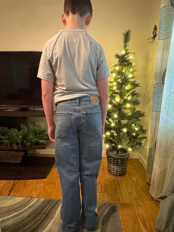 Abercrombie & Fitch has the best Kids straight jeans, they have a good stretch. The style is also amazing making it very comfortable for kids! Definitely a better fabric quality 👖🙂