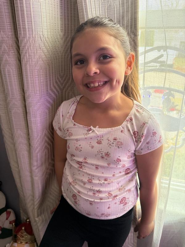 The softest shirt I have ever felt! The floral design is so cute and it fits my almost 6 year old perfectly! It has held up really well being washed multiple times.