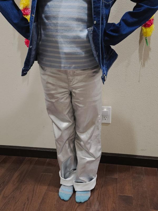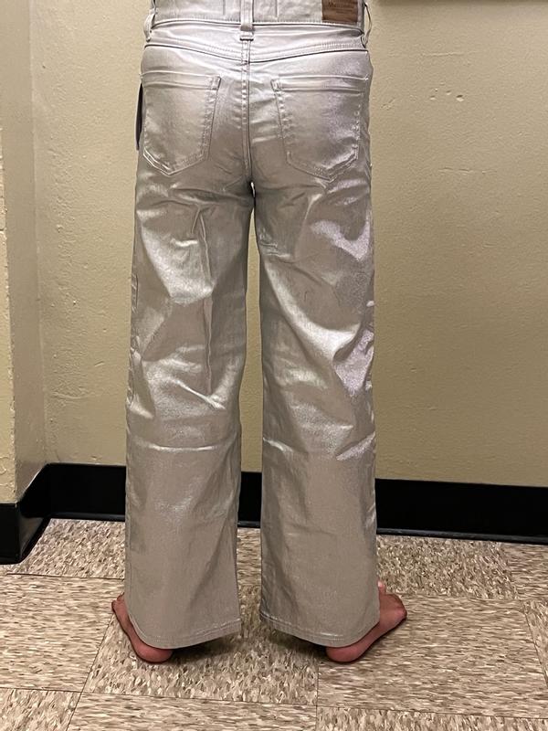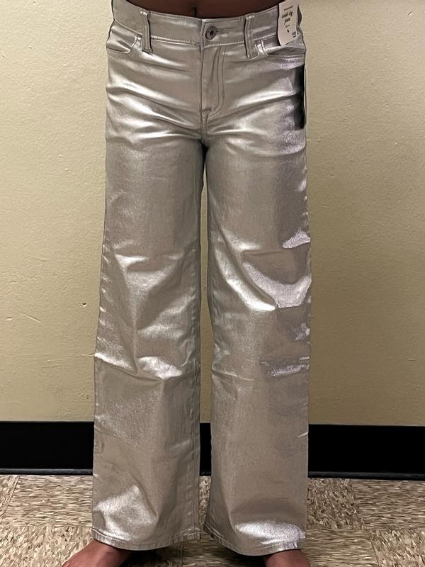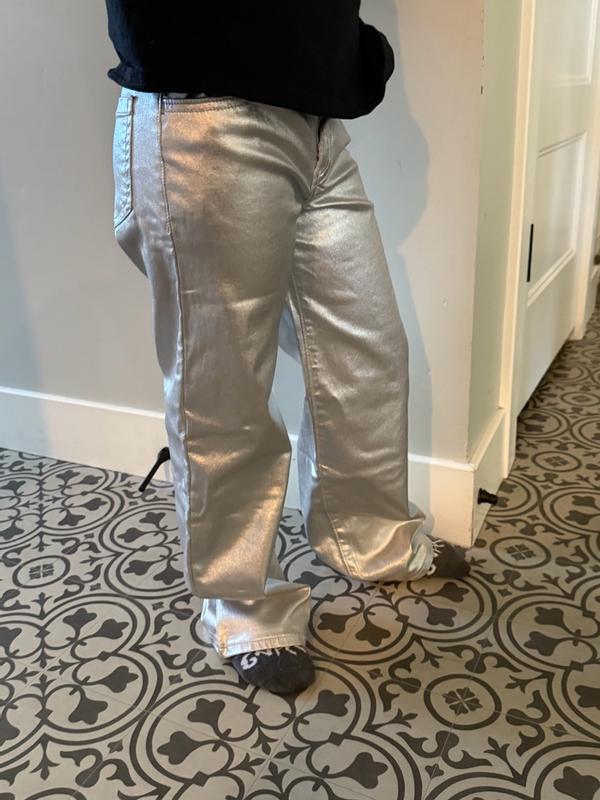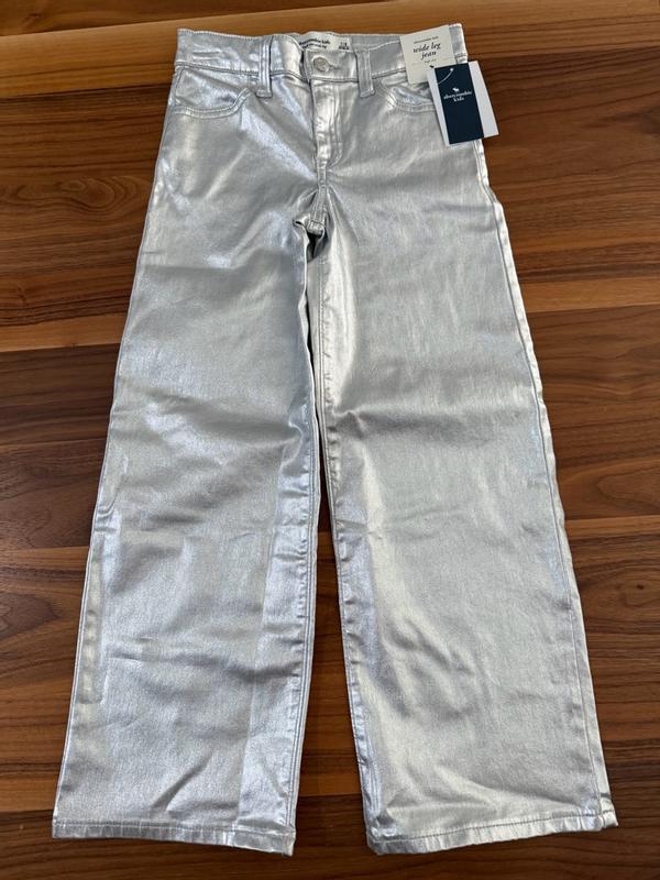 The Abercrombie & Fitch jeans are fun! They are definitely silver and make a statement. Great fit and are super cute. The quality is great and I’m sure they will last especially with how hard kids are on their clothes.