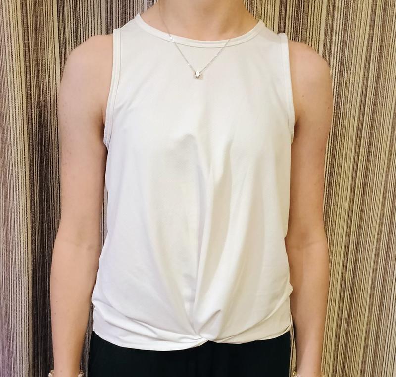 My daughter loves this tank top. She said it's a very breathable fabric and works perfect for dance practices. We got it in her normal size and it fit great. It's also a nice lightweight material that would work for any athletic activity. We loved the cute front twist detail as it added a stylish element. The white color is a bit see through though so it is best to wear a tan or white bra underneath. She's already asked me to try and find the same tank in different colors. Definite winner!