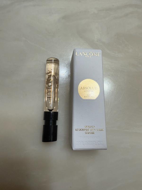 From Lancôme's Absolue Les Parfums Collection. Le Parfum Eau de Parfum is a radical encounter between rose, musk and white tea. The fragrance echoes the scent of Absolue Soft Cream, meeting centifolia rose with musk and white tea accord. Inspired by a golden glow.