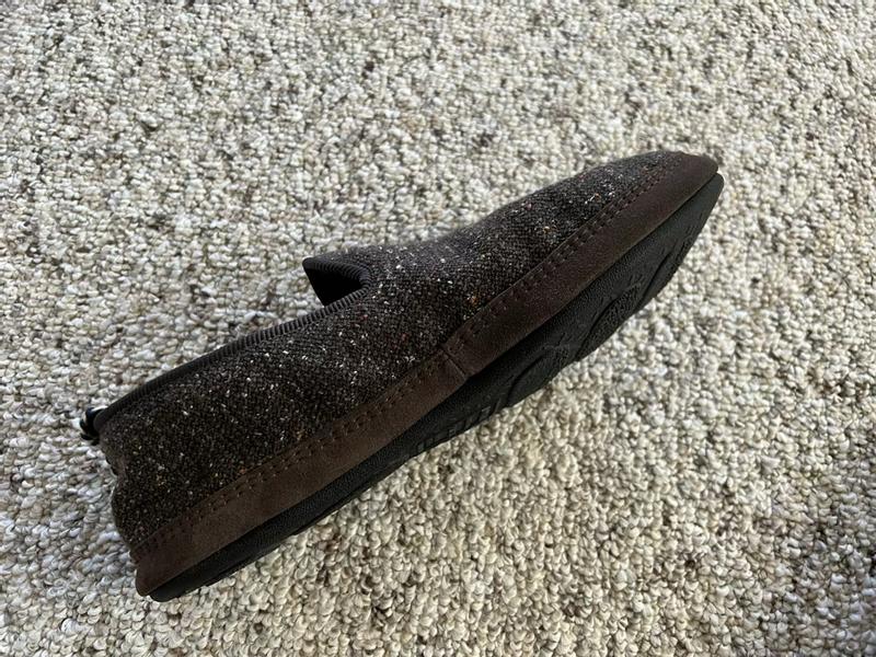 The shoe runs a little large - which works fine with socks, and eliminates any out-of-the-box discomfort. The sole is light weight, but tough. It's easy to walk outside in these and forget they are slippers.The entire upper is well-made. This is a good value. I wear these every morning for six months of the year. I expect to buy these again in a few years when they eventually wear out out.