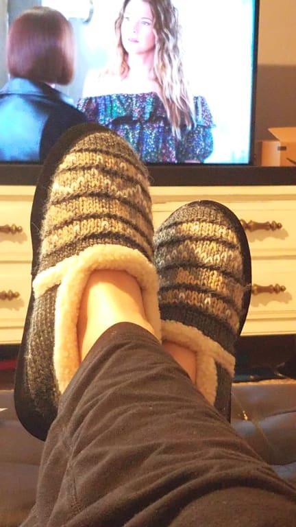 Enjoying a relaxing visit with my Bestie! Slippers are the best!