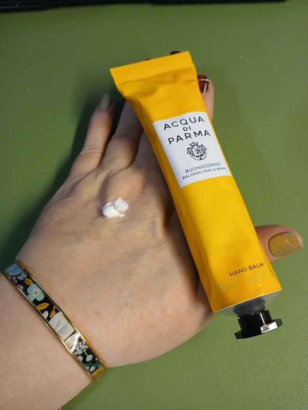Acqua di Parma Buongiorno Hand Balm deeply nourishes and softens the hands while absorbing quickly without a greasy feel, leaving the skin smooth, comfortable, and delicately scented with a fresh, elegant fragrance.