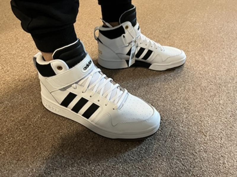The Adidas Postmove Mid shoes in white with blue stripes offer a blend of classic style and modern comfort. The white base with blue accents gives them a clean, versatile look that pairs well with various outfits. The mid-top design provides extra ankle support, making them suitable for both casual wear and light athletic activities. The cushioning in the sole ensures a comfortable fit for extended wear, while the durable construction promises longevity. Overall, these shoes are a stylish and practical choice for anyone looking to add a touch of retro flair to their wardrobe.
