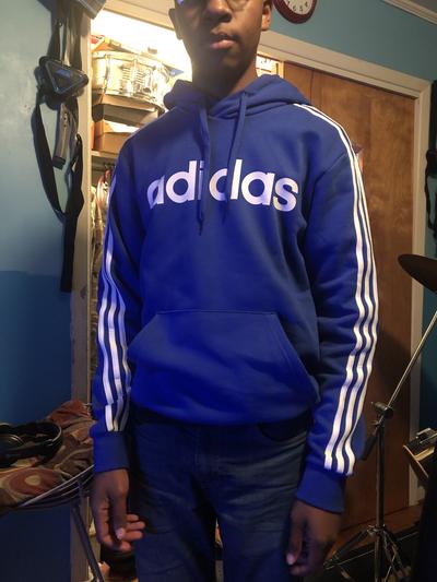 Bought as a Xmas present for my son. It’s not a colour he would usually pick and he doesn’t usually wear the 3 stripes tops but this is his favourite hoodie/sweater because it is so soft and comfortable.