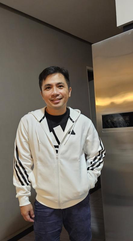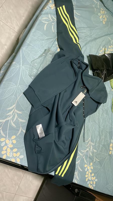 Good fit. Love the stripes on the sleeve. Bit heavy but feels good