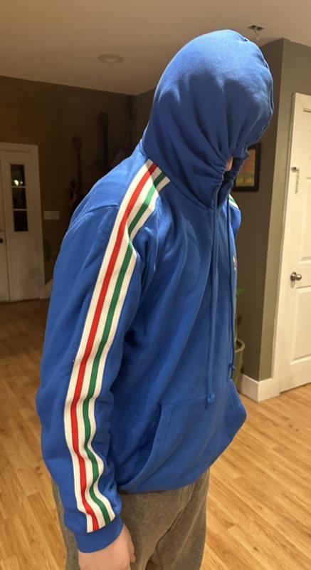 Nice colour - perfect hoddie. Nice to wear, Easy to handle. Good choice with 3v stripes. Perfect size.