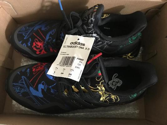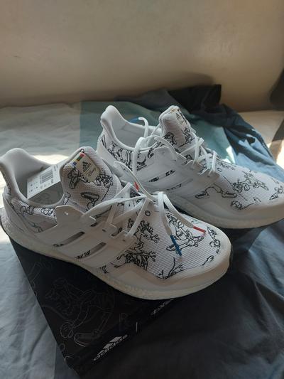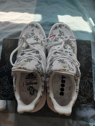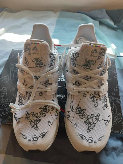 Very happy with these, they arrived right on time and the box is really nice. They're so comfortable and the overall quality is amazing, they don't really look like standard Ultraboosts, maybe not as slim. The detail is a real nice touch, the Disney Logo and the red and blue and the laces, the black lines around the shoe look good too. Maybe a little tricky to tell that they're Disney but they really are fantastic. Would definitely recommend!