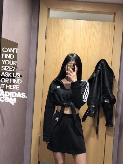 Adidas brand is my new sportwear brand. I bought this in a medium and I'm afraid I will have to return for a size small and compare the fit of both of them to see which one fits the best. It fits beautifully on me and I am very pleased with my purchase but more than that I am pleased with the price. I got a great deal on it. Thank you Macy's!