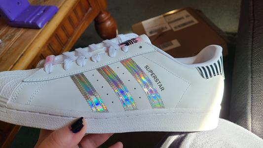 I have several pairs of Adidas superstars and love them. ❤ I love the variety in colours and over all look of them. They are comfortable but not really a running shoe, I would also recommend going a size smaller than you regularly wear with name brand shoes