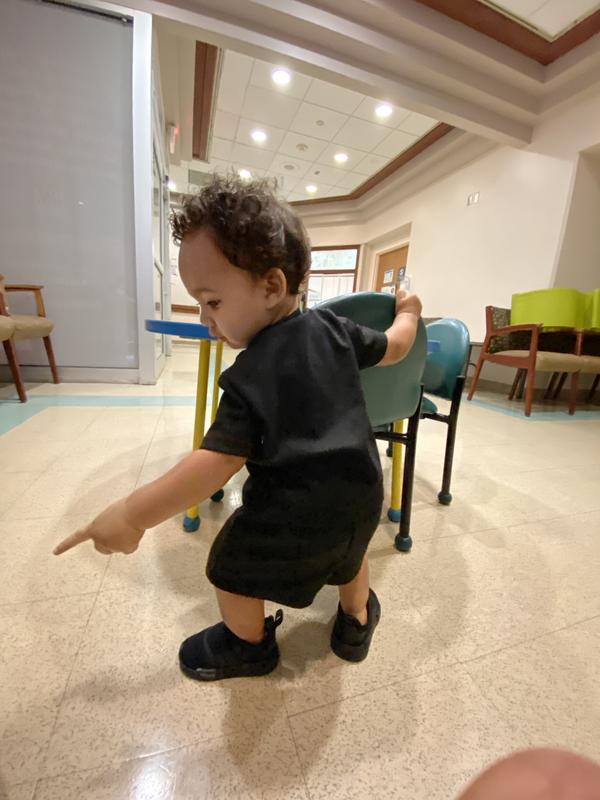 Flexible fabric mean they’re easy to slip on, flexible sole good for new walkers